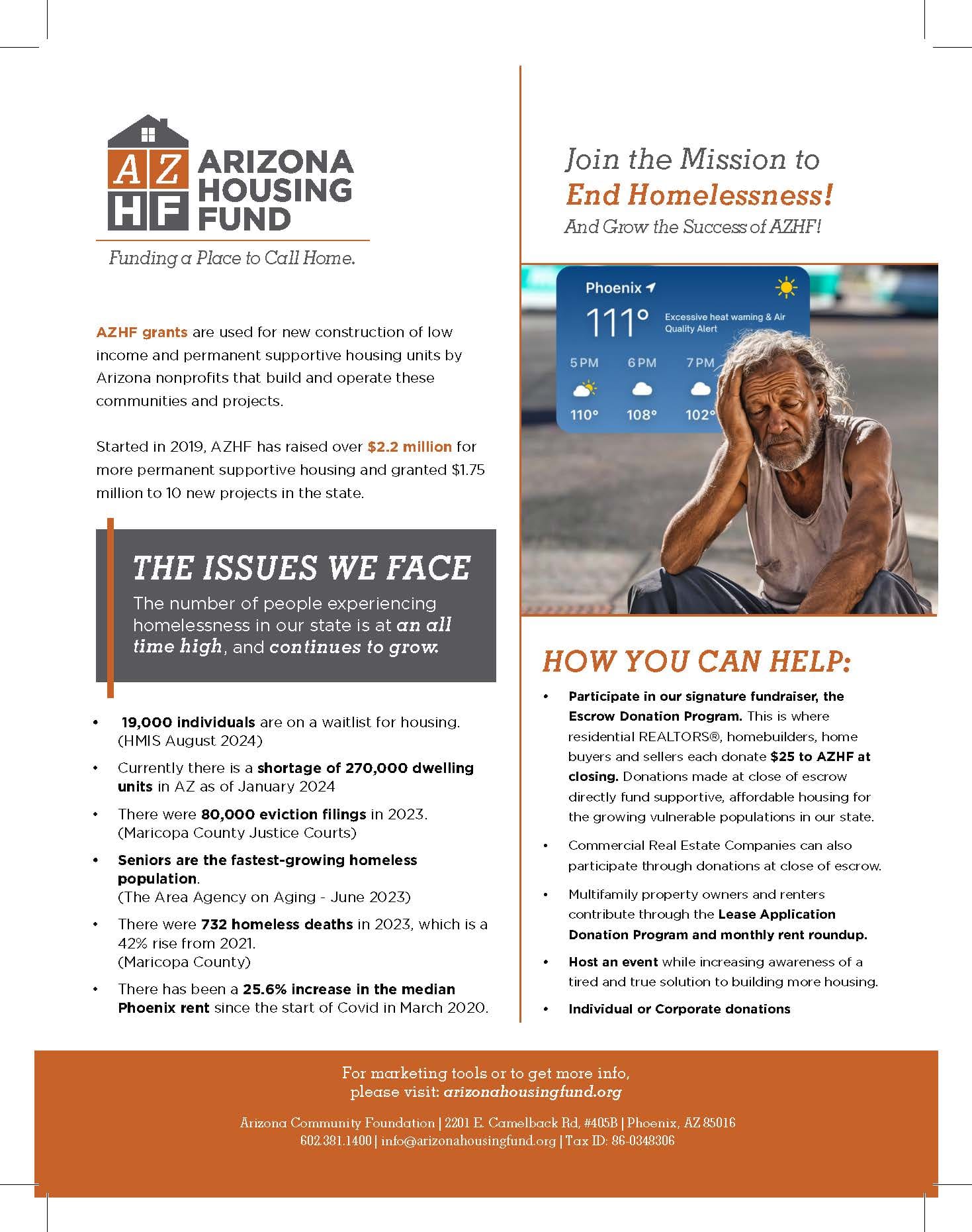 See and use the ESCROW DONATION FORM and the AZHF info flyer above in the Residential Escrow Donation Toolkit.